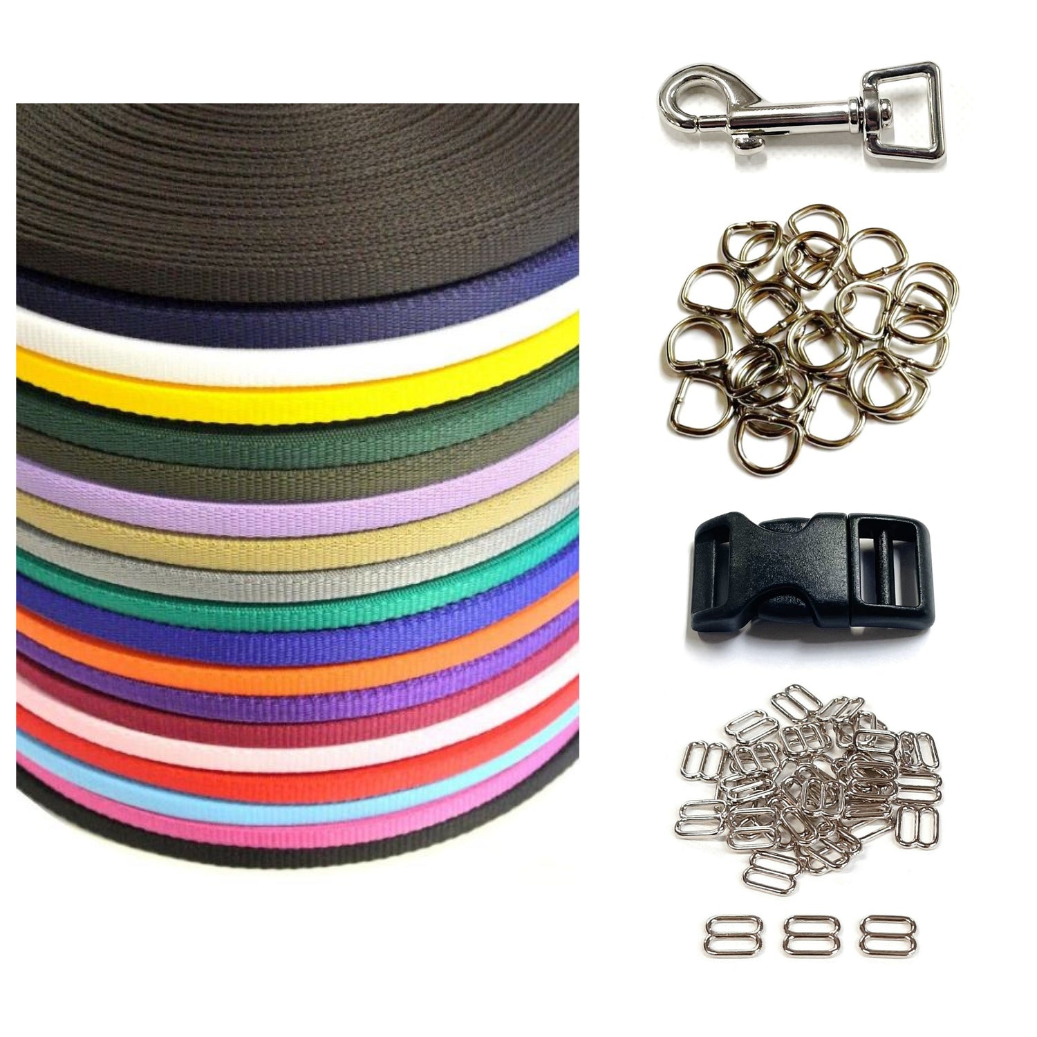All of our 16mm Webbing & Hardware are high quality, strong and durable. Ideal for dog collars, harnesses, sewing webbing, straps, handles and crafts.
