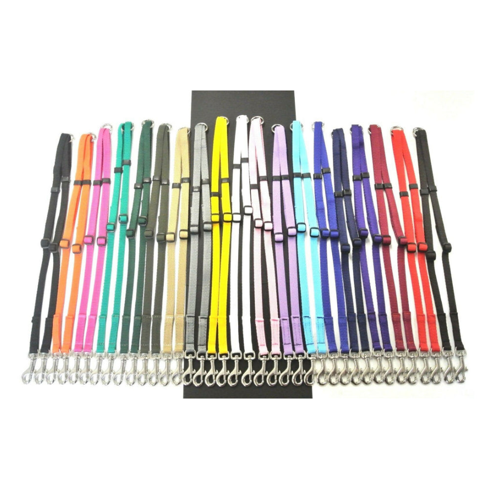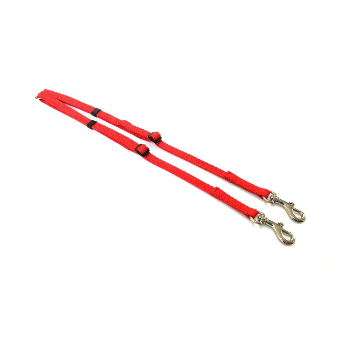 Using 13mm strong and durable webbing and a nickel plated O-ring with 2 sewn in 13mm heavy duty nickel plated trigger clips. Each side can be adjusted from 17" - 26" (43cm - 66cm). Great for walking 2 dogs on 1 lead. Available in a wide range of colours.