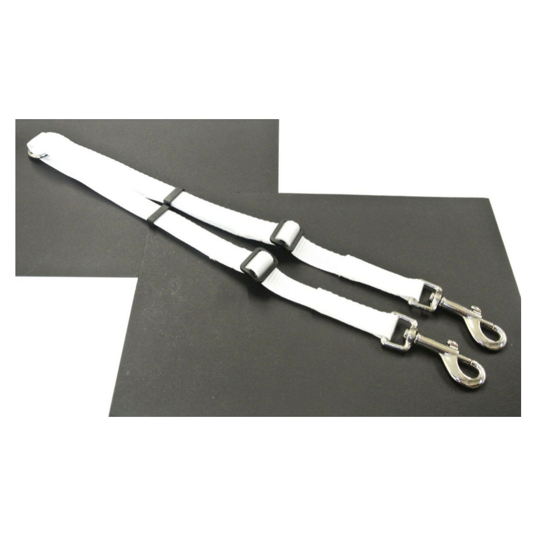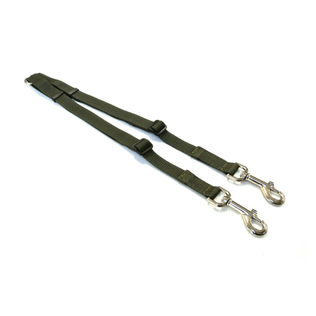 Using 20mm strong and durable webbing and a nickel plated O-ring with 2 sewn in 20mm heavy duty nickel plated trigger clips. Each side can be adjusted from 17" - 26" (43cm - 66cm). Great for walking 2 dogs on 1 lead. Available in a wide range of colours.