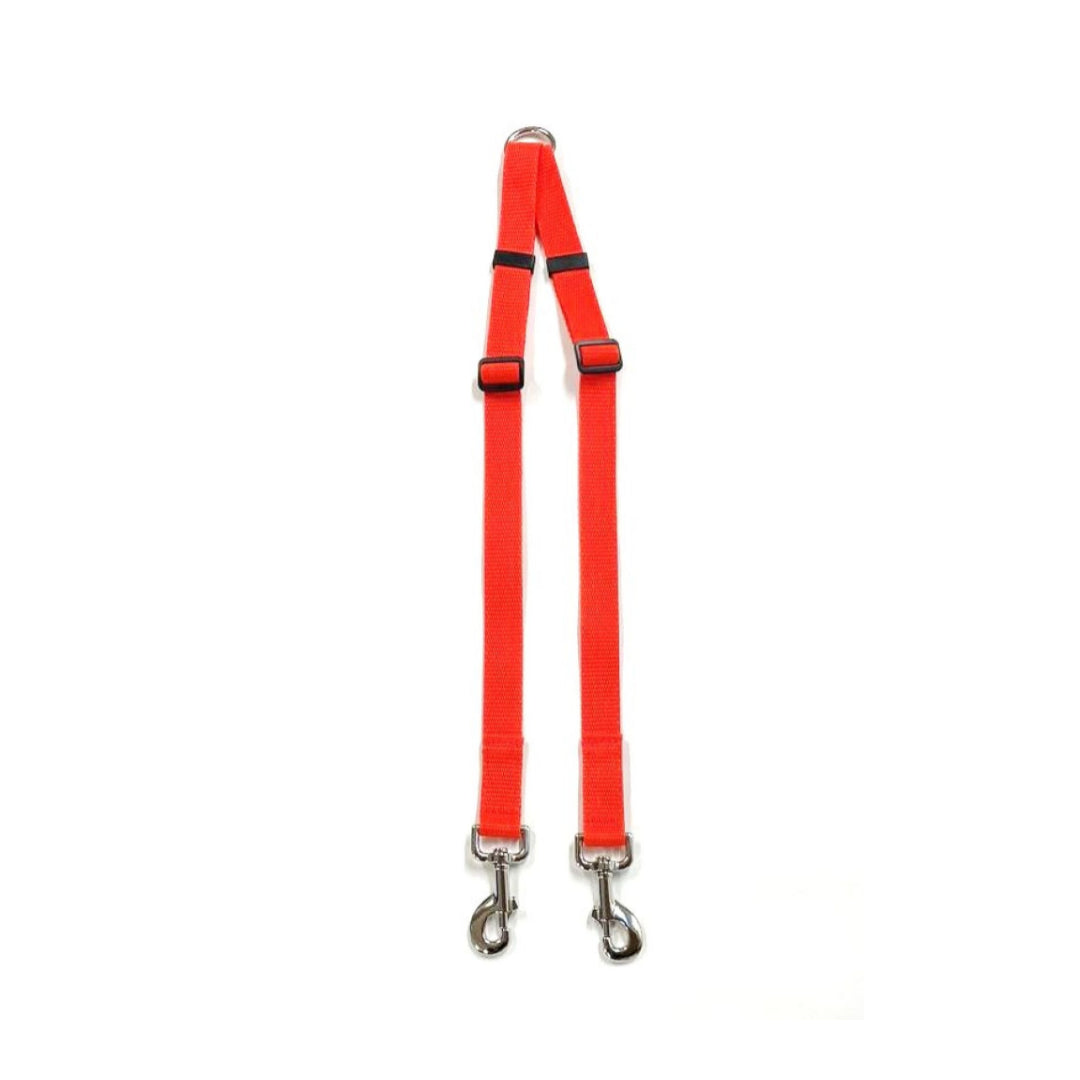 Using 25mm strong and durable webbing and a nickel plated O-ring with 2 sewn in 25mm heavy duty nickel plated trigger clips. Each side can be adjusted from 17" - 26" (43cm - 66cm). Great for walking 2 dogs on 1 lead. Available in a wide range of colours.