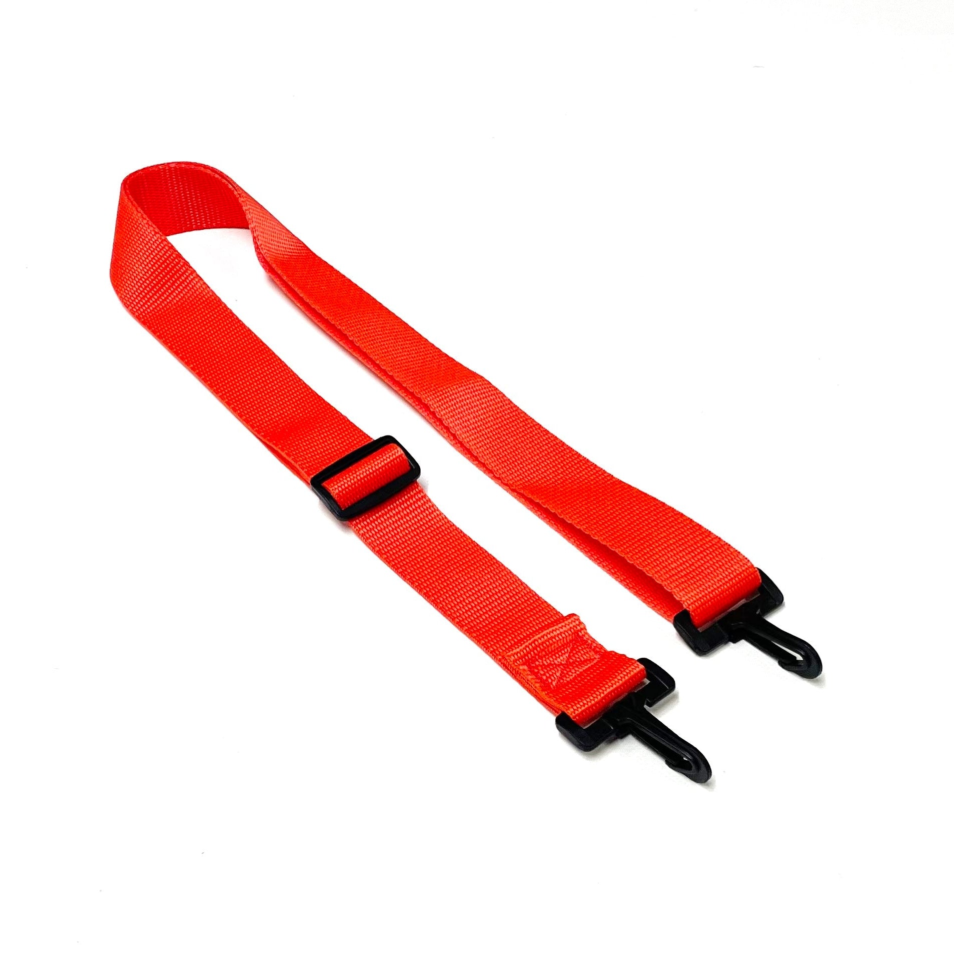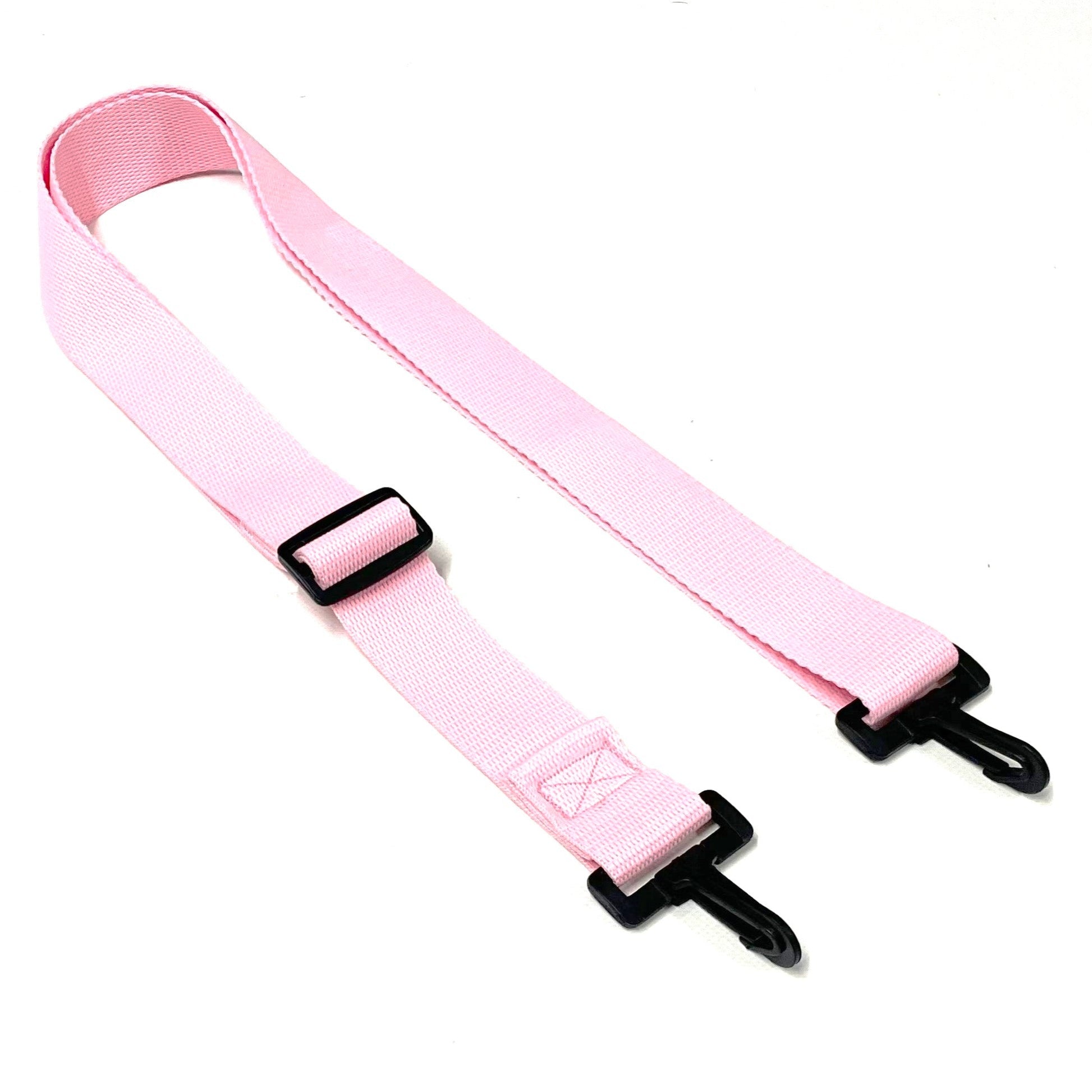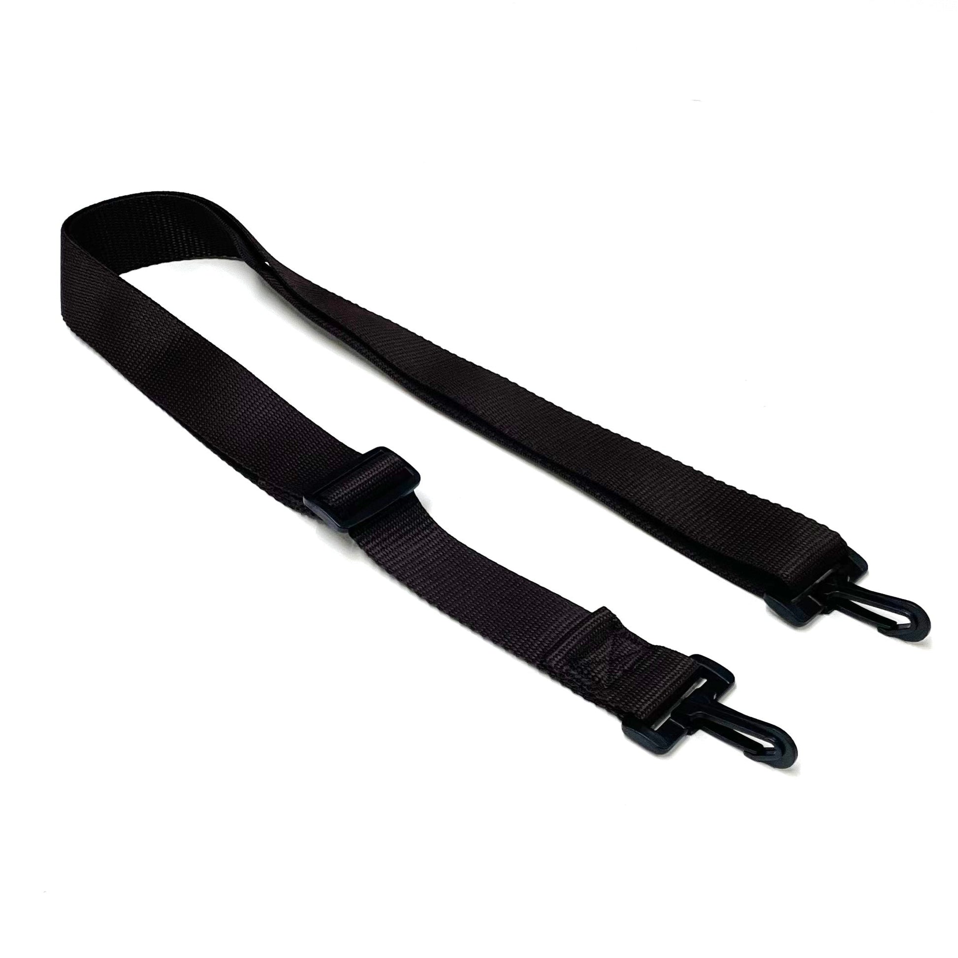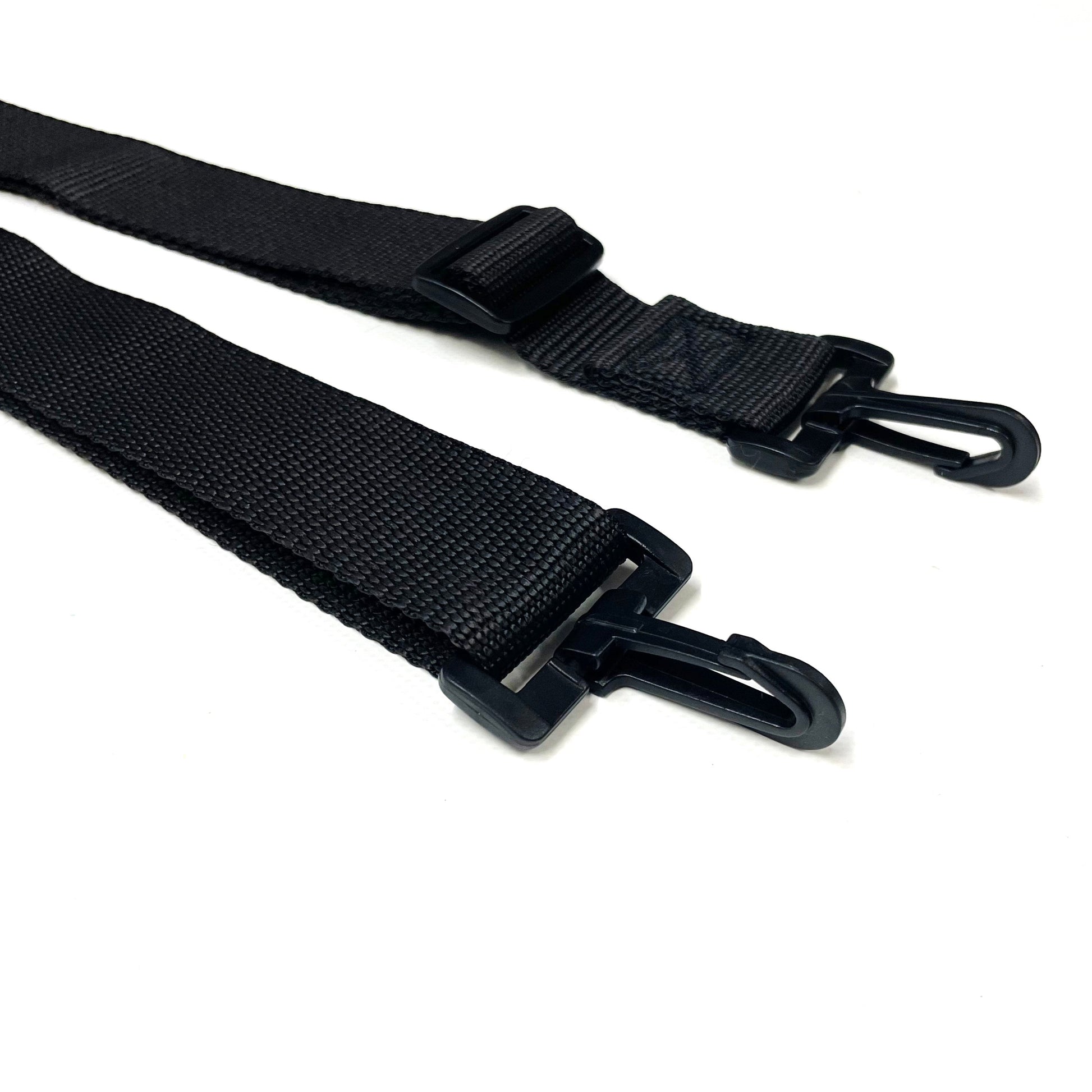 Using 40mm polypropylene webbing which is strong and durable, with 2 plastic push clips and a 3 bar slide. These straps are adjustable, the longest length is 160cm and the shortest length is 90cm. These are universal and can be used for a wide range of bag types. To be clipped onto a D-ring or O-ring that is sewn on the bag.