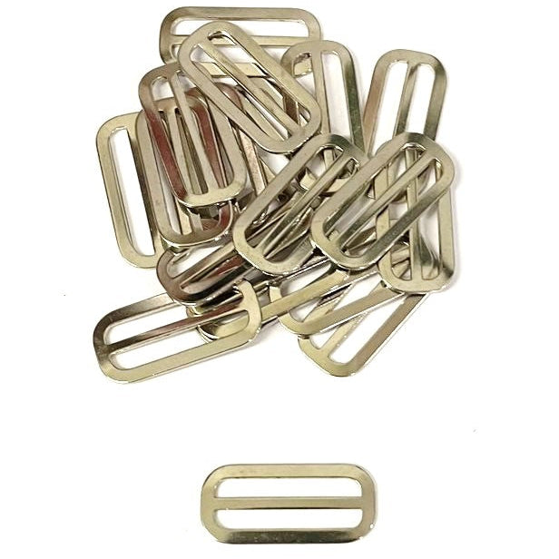 These metal 3 bar slides are high quality and nickel plated. Making these metal 3 bar slides very strong and durable. Ideal for webbing, bags and straps and tapes. Available in sizes ranging from 13mm to 50mm and in quantities of x10 and x50. If you would like to purchase a larger quantity then please feel free to contact us on our email or phone.