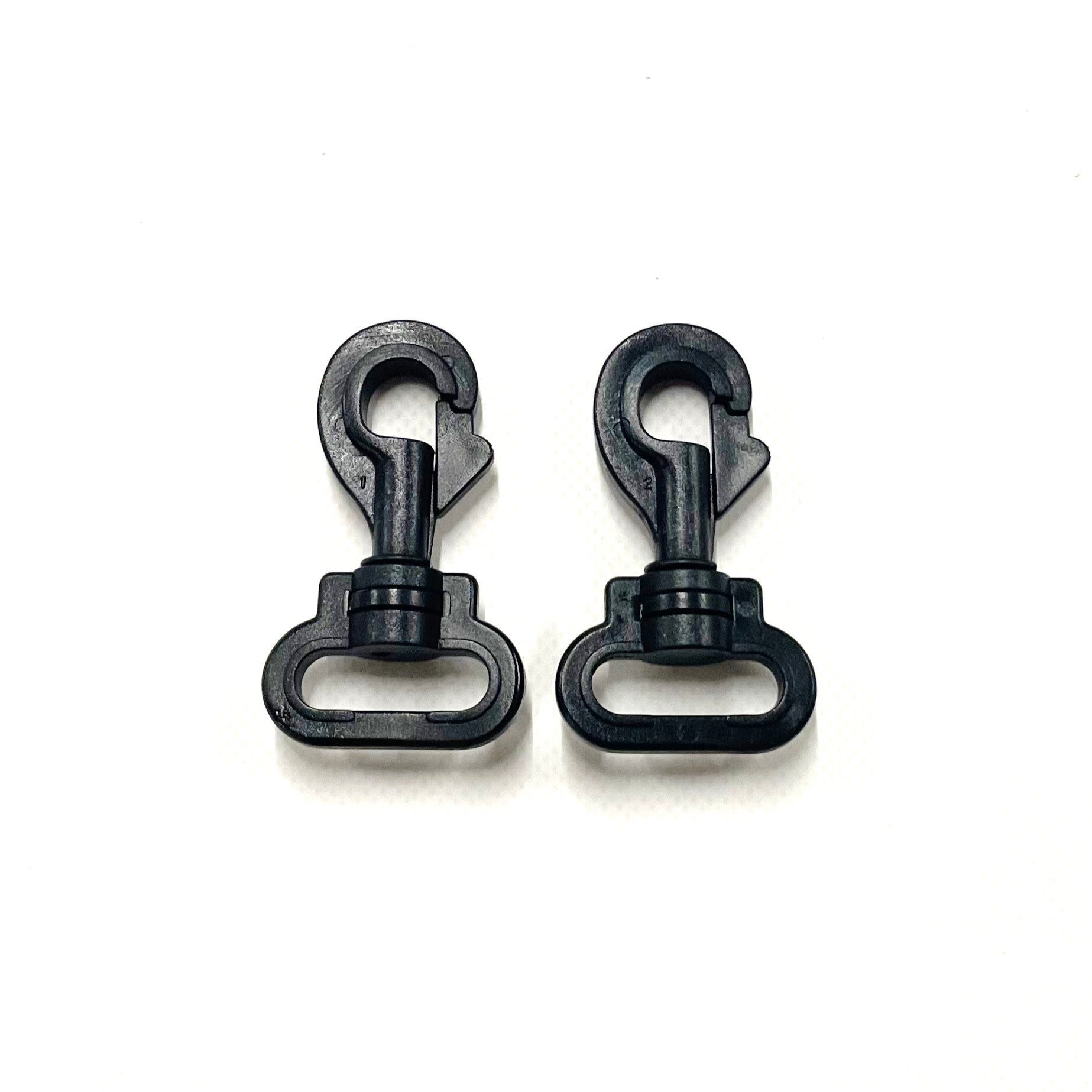 These black plastic swivel trigger clips snap hooks are strong and durable. 25mm and 38mm are the inside measurements of the clip, where the webbing/strap goes. These are ideal for bags, shoulder bag straps, handles, dog leads, straps and many more uses.