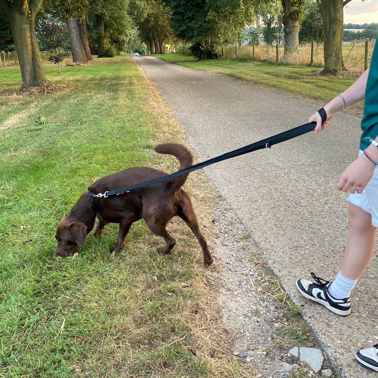 - Hands-free dog walking.